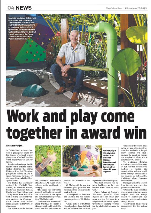 2021 Little Roo’s Playground at Whitfield State School at the AILA awards (Article)