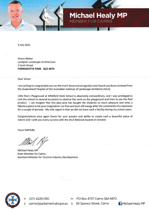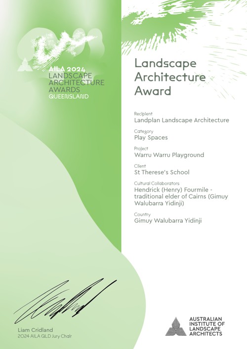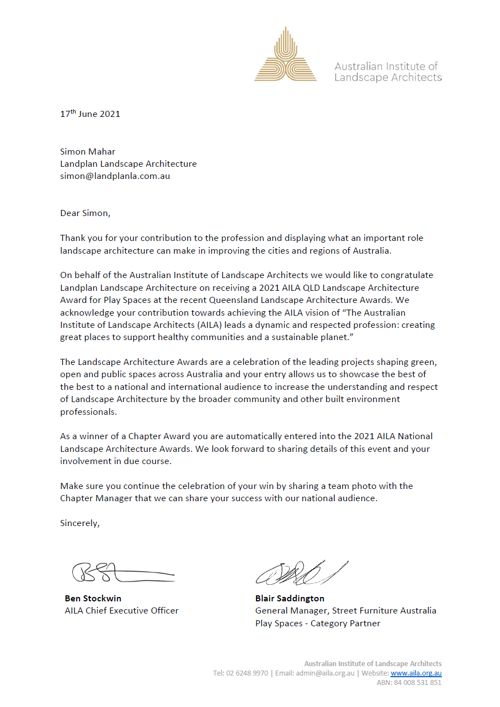 2021 AILA QLD Landscape Architecture Award for Play Spaces (Letter)