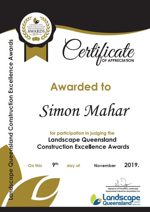 Award for participation in judging Landscape Queensland Construction Excellence Awards (PDF)